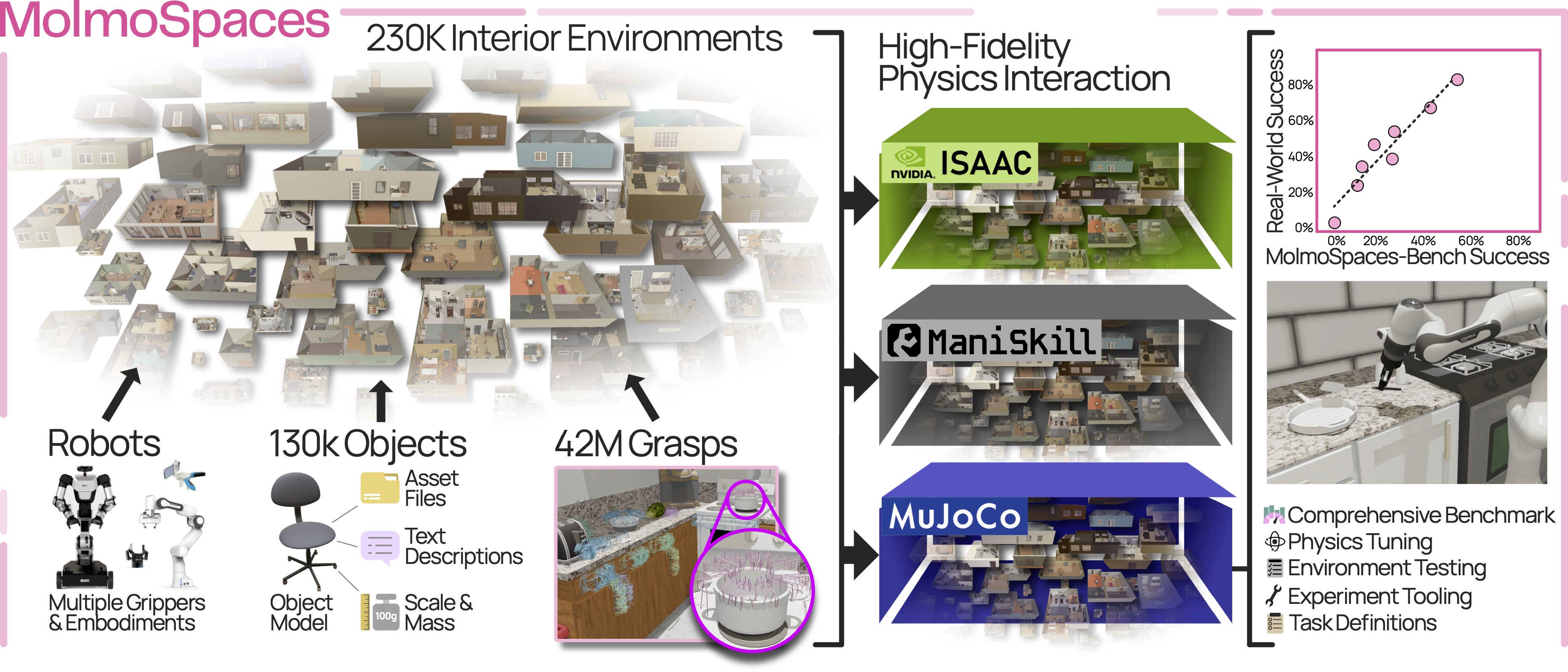 object models, and grasp annotations compatible with MuJoCo, Isaac Lab, and ManiSkill,